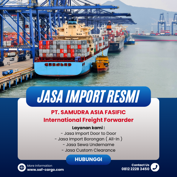 Dapatkan Spesifikasi Harga JASA IMPORT RESMI Produk Terbaik dari PT. SAMUDRA ASIA FASIFIC JASA IMPORT ASIA & EROPA, Door To Door, Borongan All-In, Under-Name, Customs Clearance.